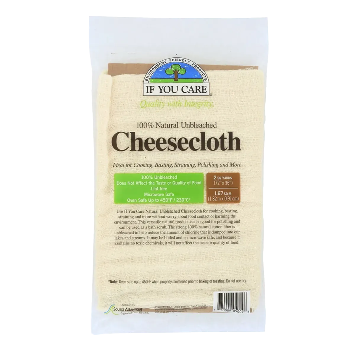 If You Care Cheesecloth is crafted from organic, unbleached cotton, making it ideal for cooking, basting, straining, and more. It can be boiled, and is safe to use in microwaves and ovens, without impacting the taste or safety of your food. It’s also excellent for polishing and other household tasks.