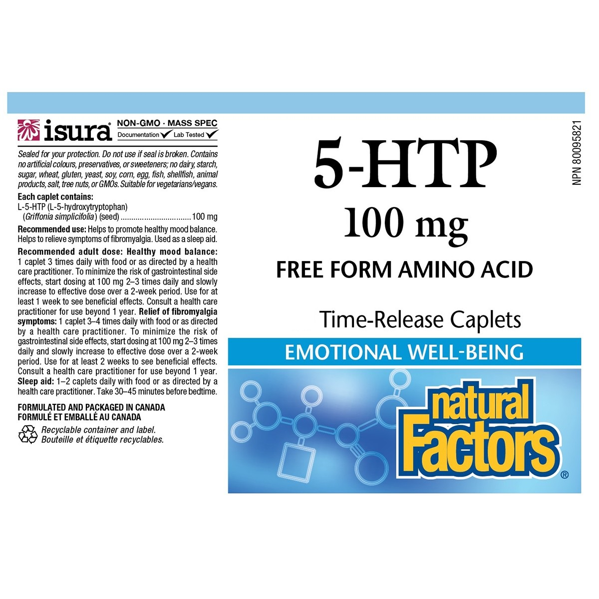 5-HTP is an amino acid needed to make serotonin. 5-HTP from Natural Factors uses timed-release caplets for a steady increase in serotonin levels that Assist promote healthy mood balance. 5-HTP is also used as a Restful-Restful-Sleep aid. Additionally, it also Assists relieve symptoms of fibromyalgia as well as reduces the severity and duration of migraine headaches when taken as a preventive Health-Wellness-Car-e.
