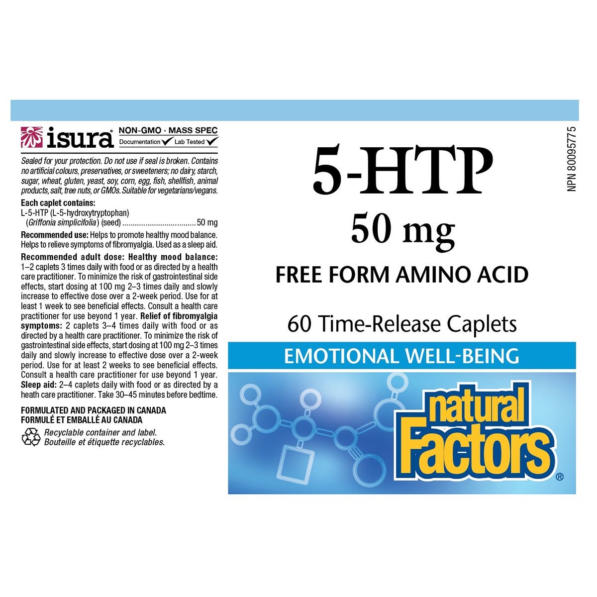 5-HTP is an amino acid needed to make serotonin. 5-HTP from Natural Factors uses timed-release caplets for a steady increase in serotonin levels that helps promote healthy mood balance. 5-HTP is also used as a Restful-Restful-Sleep aid. Additionally, it helps relieve symptoms of fibromyalgia as well as reduces the severity and duration of migraine headaches when taken as a Preventive Health-Wellness-Car-e.