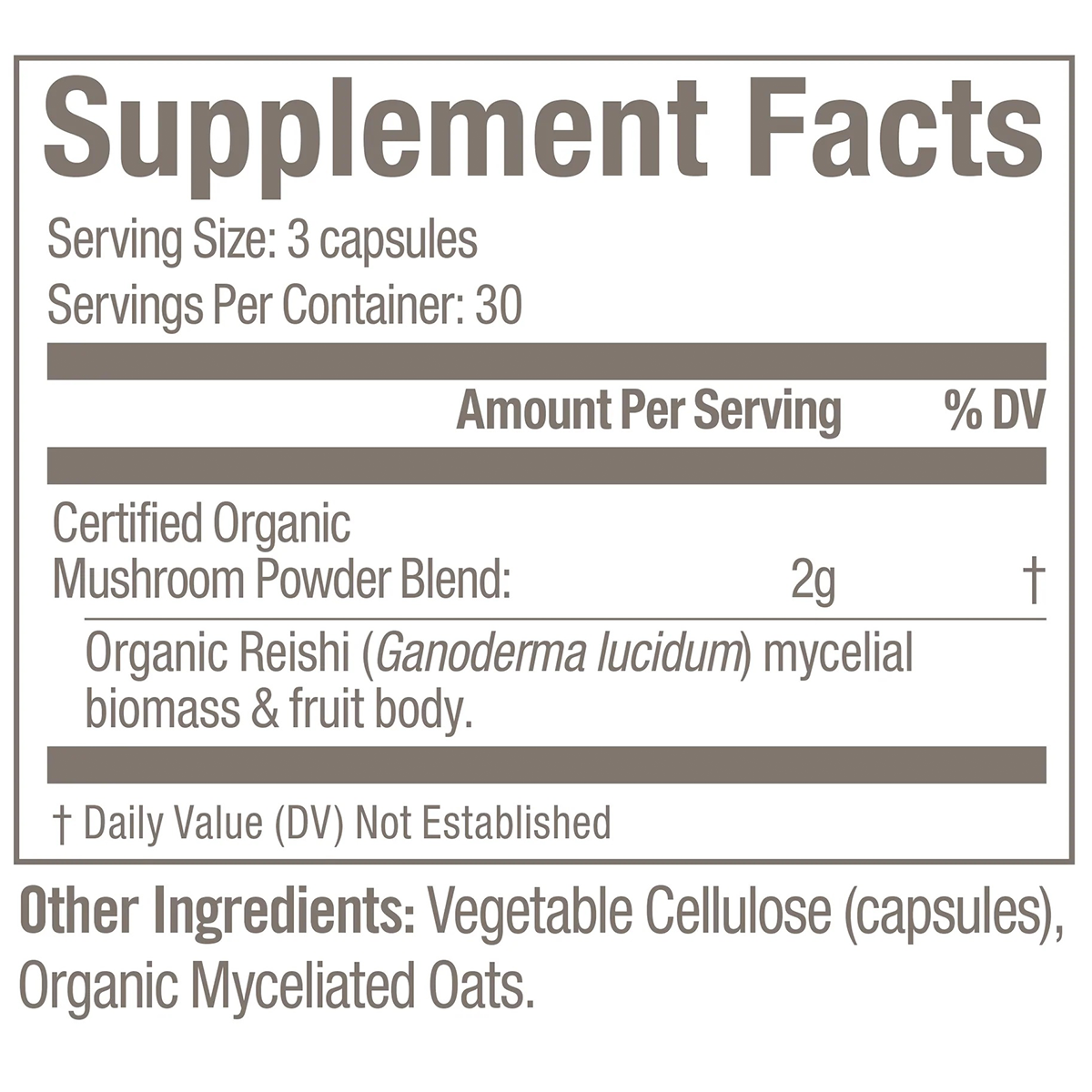 Reishi is an adaptogen that can Assist the body cope with everyday stress in healthy ways that keep you feeling calm and balanced. Try Om Reishi capsules anytime you need to Aid a healthy mind or body reset.