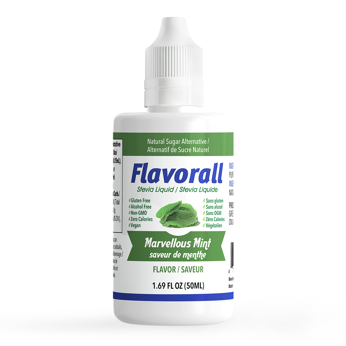 For a cool lingering effect and freshness in meals, mint is used in salads, curries, smoothies, and much more. Flavorall Marvelous Mint liquid sweetener adds freshness to your food and drinks including all the health benefits that you are looking for. It’s perfect for people with diabetes and for those who want to lose weight. This serves you well if you are on a Nutrition Plan that is vegan, gluten-free, non-alcoholic, sugar-free, and Non-GMO. With only a couple of drops, you get the rich and fresh taste of mint without any extra effort. Pack Size: 50ml.