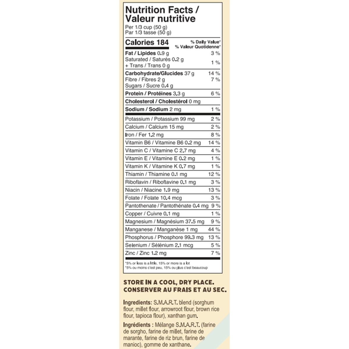 S.M.A.R.T. blend (sorghum flour, millet flour, arrowroot flour, brown rice flour, tapioca flour), xanthan gum.