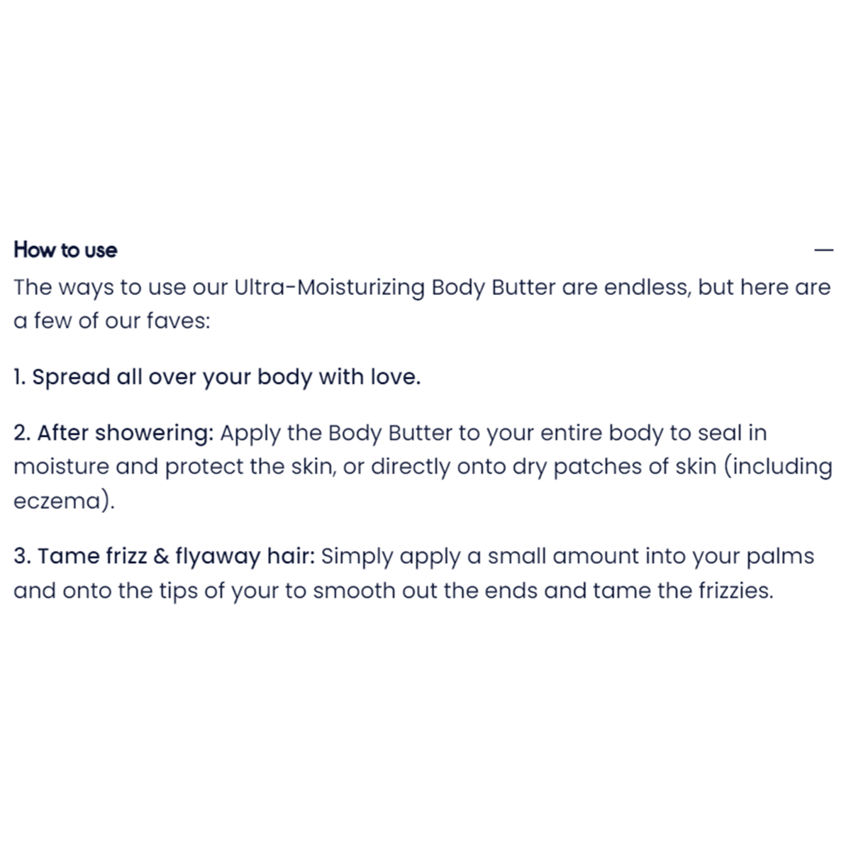 The ways to use our Ultra-Moisturizing Body Butter are endless, but here are a few of our faves: