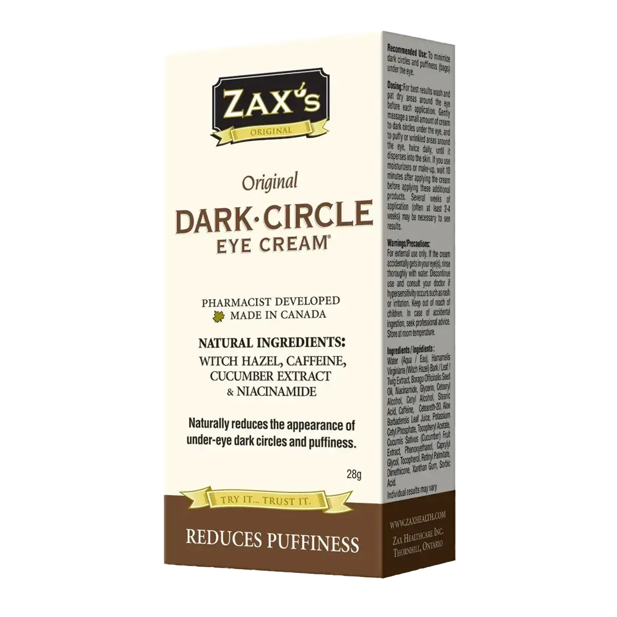 Zax's Original Dark Circle Eye Cream is made for you with top quality cucumber extract, witch hazel, niacinamide, and caffeine. Let us Assist you look your natural best!