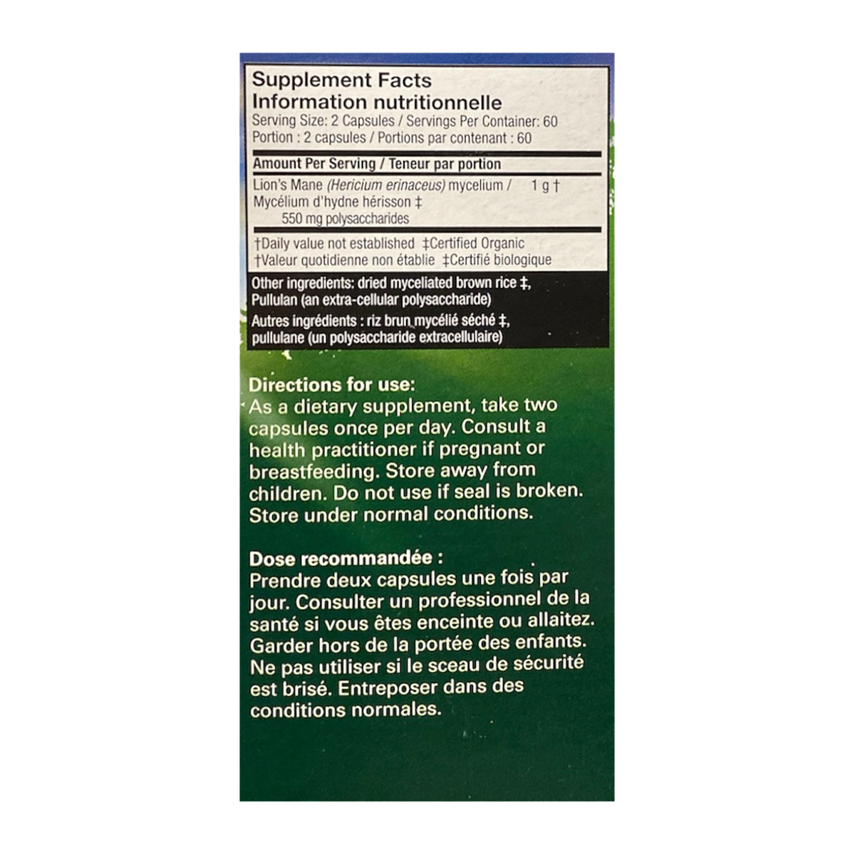 Host Defense Lion’s Mane Capsules use activated, optimally dried, Certified Organic mushroom mycelium, with a full spectrum of constituents: >55% (550 mg/serving) polysaccharides and an array of extracellular constituents and other myco-nutrients, essential for Supporting Natural Immunity.