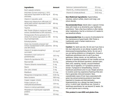 For adult use only. Do not use if you have a bile duct obstruction or are allergic to plants of the Asteraceae/Compositae/Daisy family. Do not use if you are taking antibiotics or nitroglycerin. Consult a healthcare practitioner prior to use if you have gallstones, kidney stones, an iron deficiency, liver disorder or develop symptoms of liver trouble such as yellowing of the skin/eyes (jaundice), stomach pain, dark urine, sweating, nausea, unusual tiredness and/or loss of appetite, or if symptoms persist or worsen. If pregnant or breastfeeding, consult a healthcare practitioner prior to use. People sensitive to nicotinic acid may experience flushing of the skin that is generally mild and transient. Rare, unpredictable cases of liver injury associated with green tea extractcontaining products have been reported (in Canada and Internationally). Hypersensitivity (e.g. allergy) has been known to occur; in which case, discontinue use. Consult a healthcare practitioner for use beyond 12 weeks. Do not use if perma seal is missing.