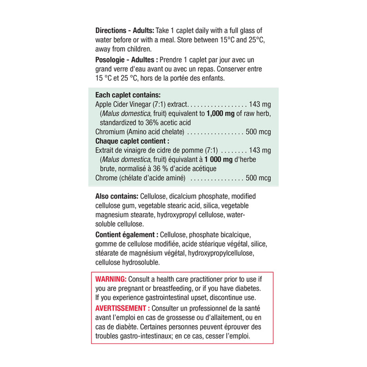 Jamieson's Apple Cider Vinegar 1000 mg has been formulated with Chromium, a mineral that helps to metabolize fats and helps to maintain healthy blood sugar (glucose) levels in the body.