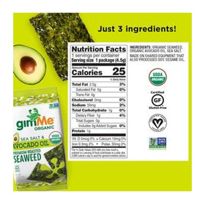 Discover a whole new way to savor the rich, buttery goodness of avocados with our latest flavor. We roast our premium organic seaweed to crispy perfection using organic avocado oil and finish it off with a sprinkle of sea salt. Three simple ingredients combine to make one tasty snack!