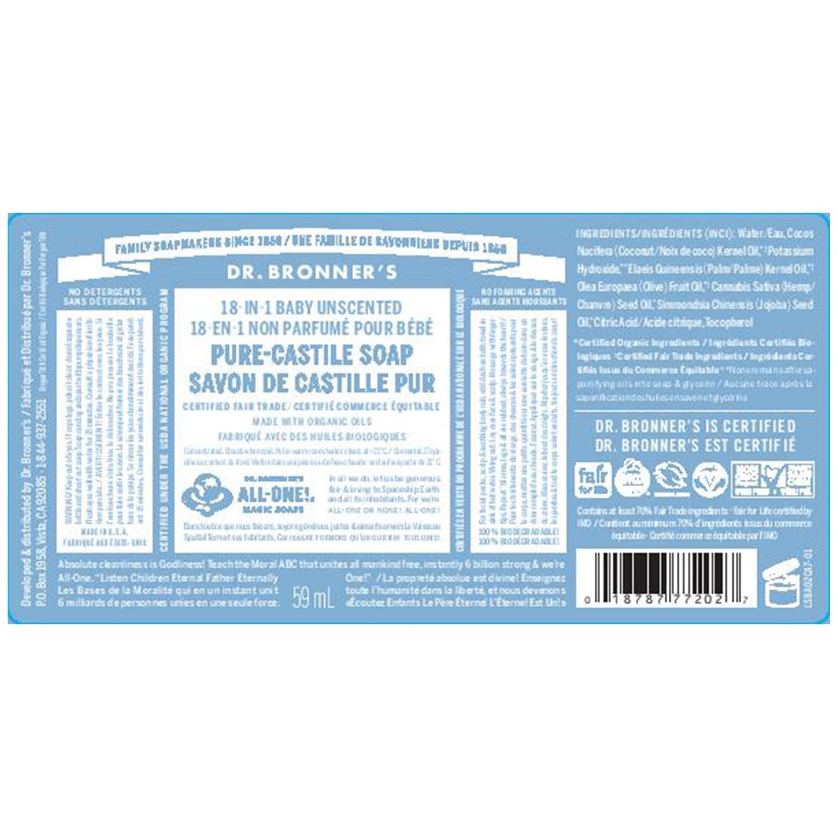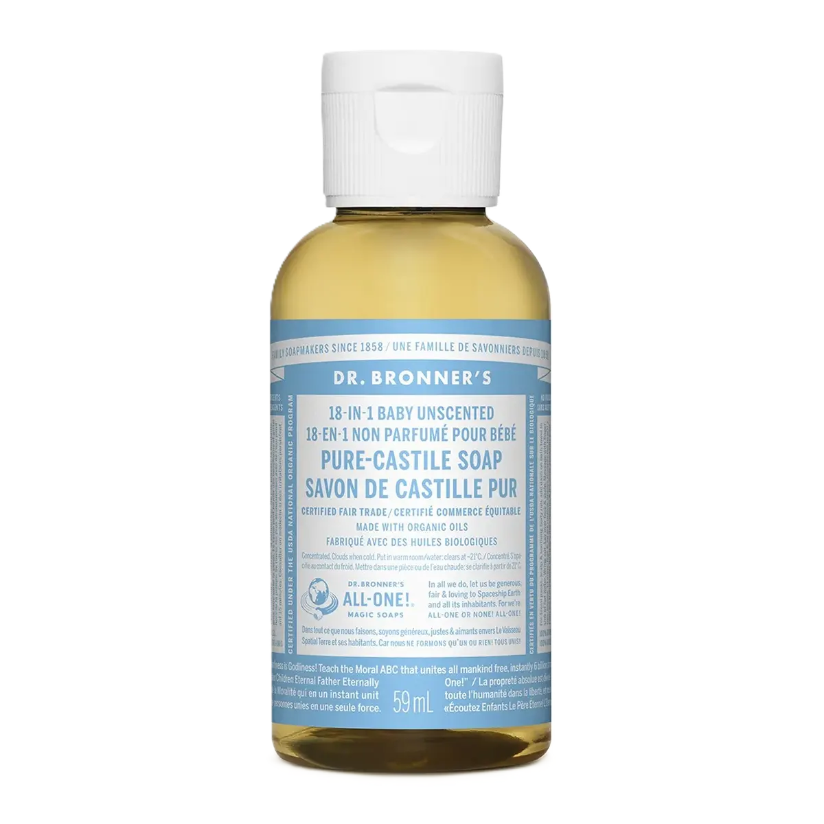 Dr. Bronner's 18-In-1 Pure-Castile Soap Baby Unscented 59mL