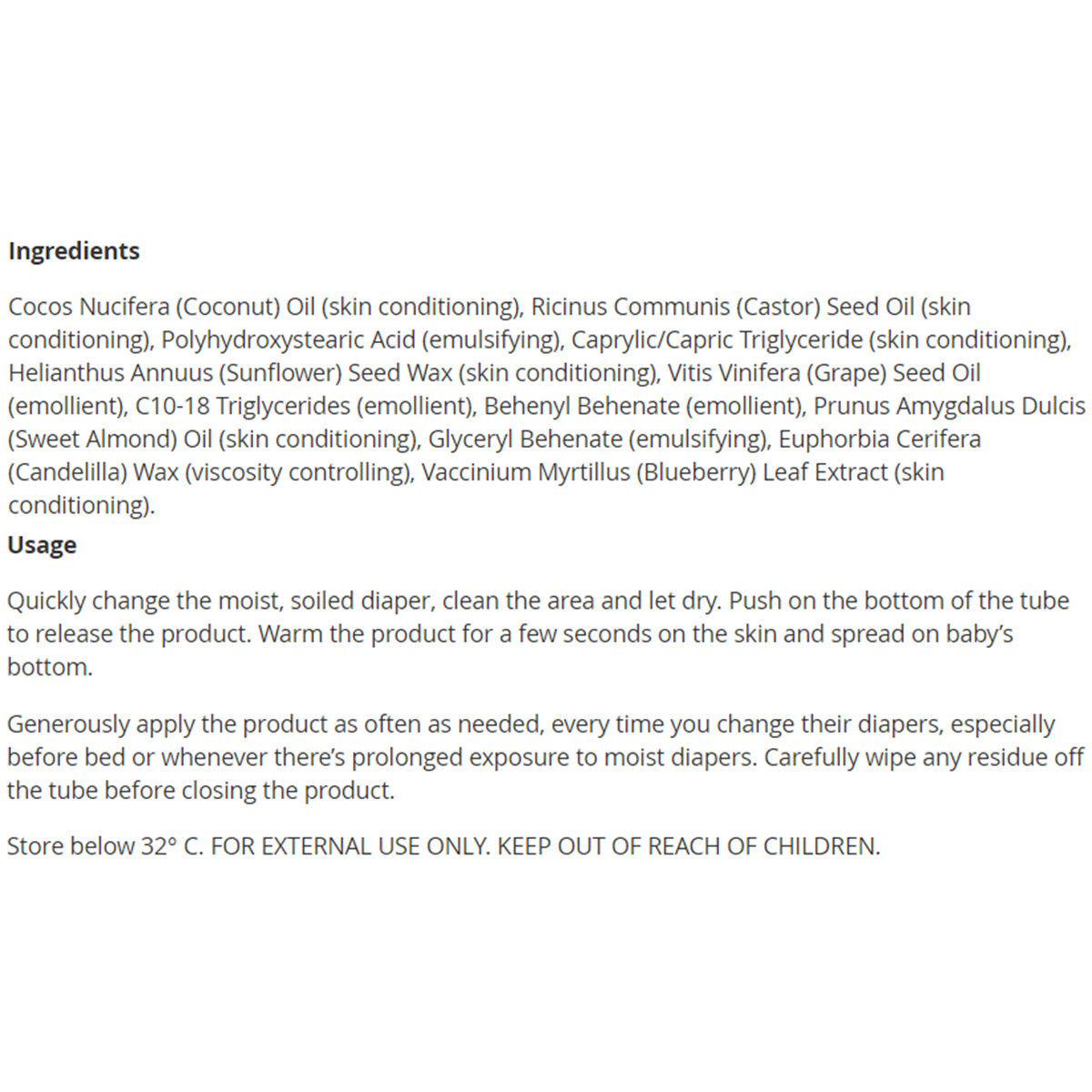 Generously apply the product as often as needed, every time you change their diapers, especially before bed or whenever there’s prolonged exposure to moist diapers. Carefully wipe any residue off the tube before closing the product.