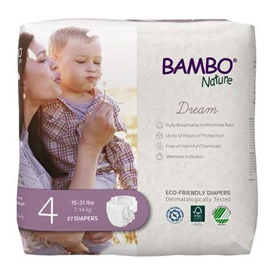 Bambo Nature disposable diapers are more than just eco-friendly—they’re safe and offer supernatural performance! Free of harmful chemicals and all known allergens, Bambo Nature diapers have a unique three-layer design and super-absorbent core that can stand up to multiple wettings—even overnight. Combined with a fully breathable backsheet, baby's sensitive skin will stay dry and comfortable. A wetness indicator changes colour to indicate when a change is needed and their flexible, waistband and latex-free leg cuffs Assist diapers stay in place while maximizing movement so your child can boot, scoot and boogie all day long.