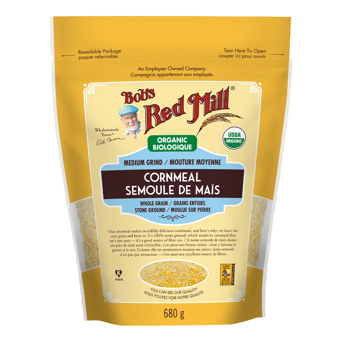 Organic Medium Grind Cornmeal makes incredible cornbread, providing a rich flavour and great texture. We grind 100% whole-grain organic corn to create a lightly textured meal perfect for cornbread, cornmeal mush, pizza crust and more.