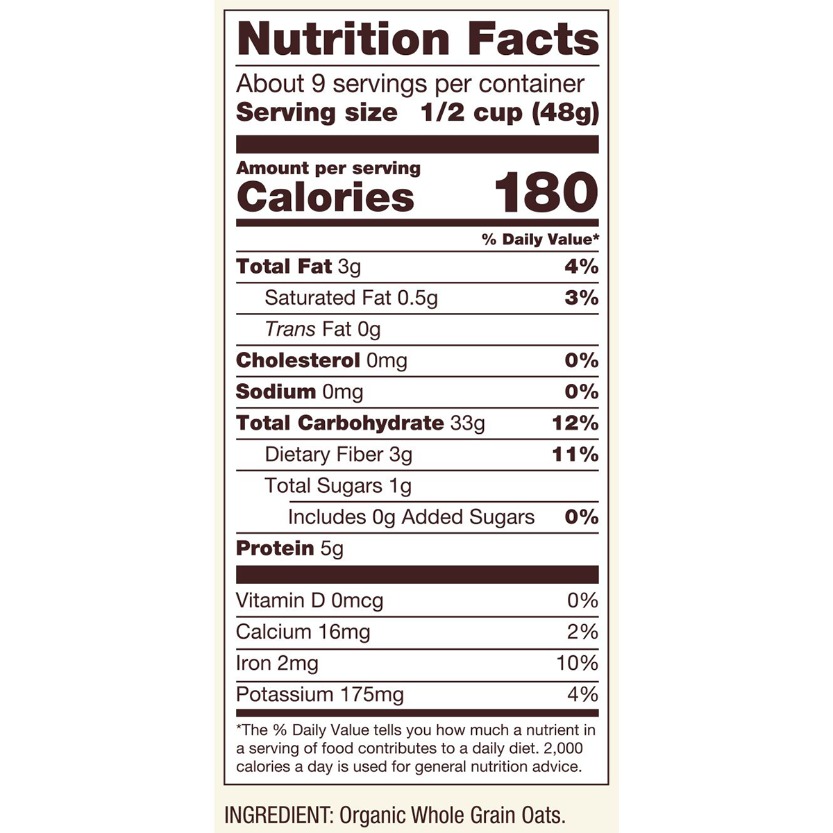 Organic Whole Grain Oats.