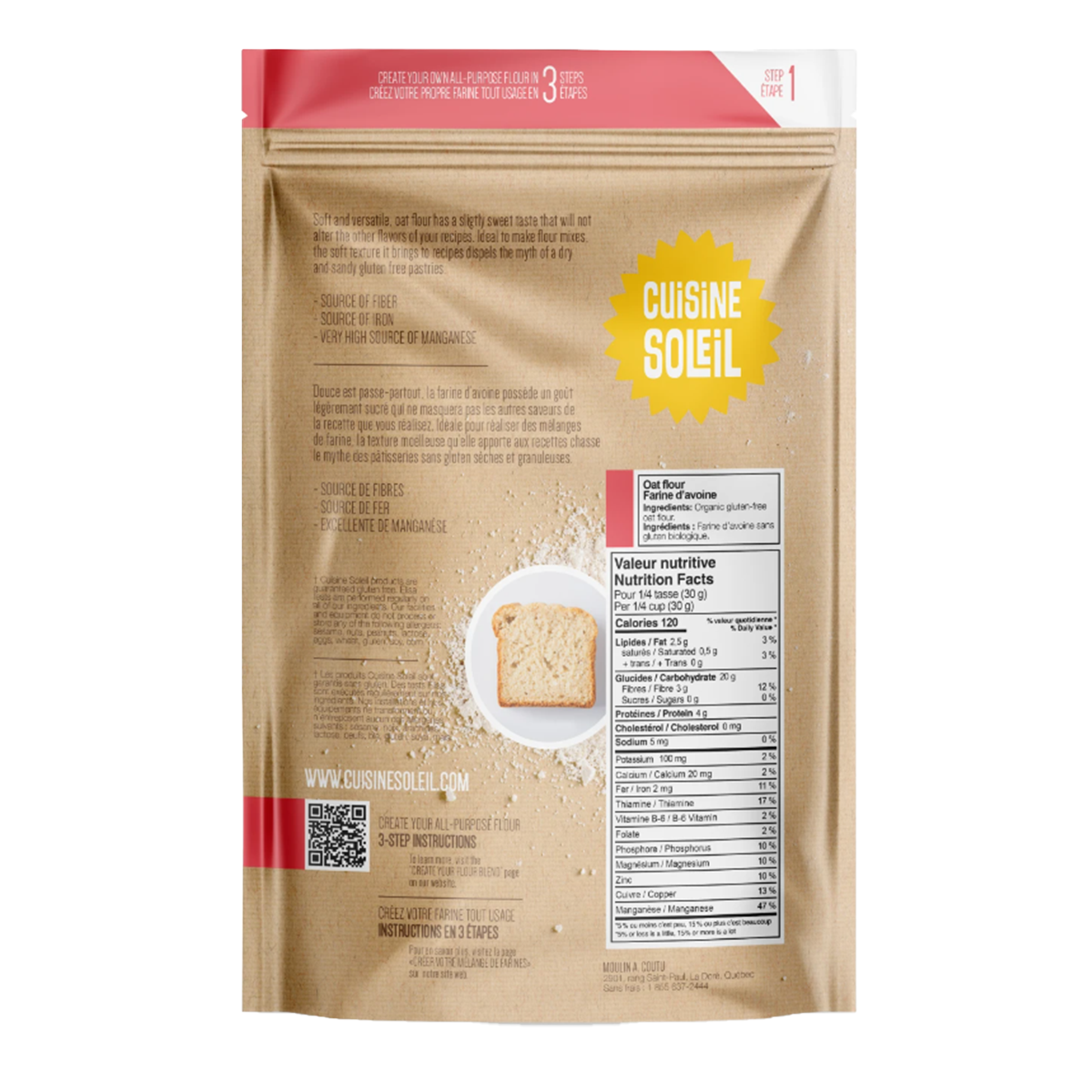 Soft and versatile, oat flour has a sligtly sweet taste that will not alter the other flavors of your recipes. Ideal to make flour mixes, the soft texture it brings to recipes dispels the myth of a dry and sandy gluten free pastries.