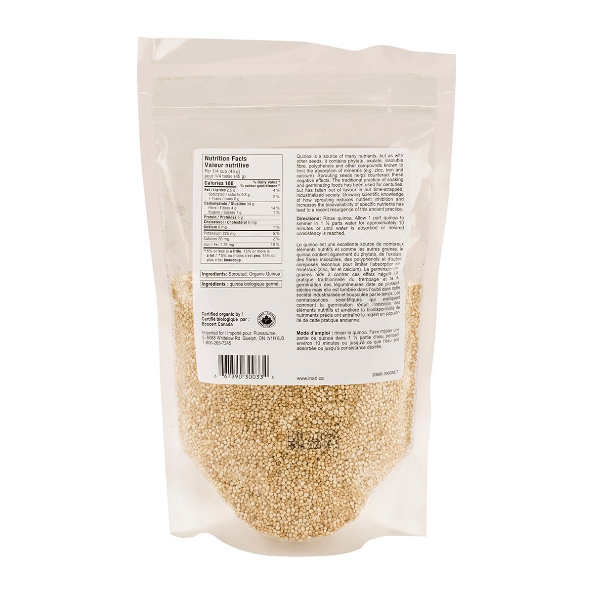 Quinoa is a source of many nutrients, but as with other seeds, it contains phytate, oxalate, insoluble fibre, polyphenols and other compounds known to limit the absorption of minerals (e.g. zinc, iron and calcium). Sprouting seeds helps counteract these negative effects. The traditional practice of soaking and germinating foods has been used for centuries, but has fallen out of favour in our time-strapped, industrialized society. Growing scientific knowledge of how sprouting reduces nutrient inhibition and increases the bioavailability of specific nutrients has lead to a recent resurgence of this ancient practice.