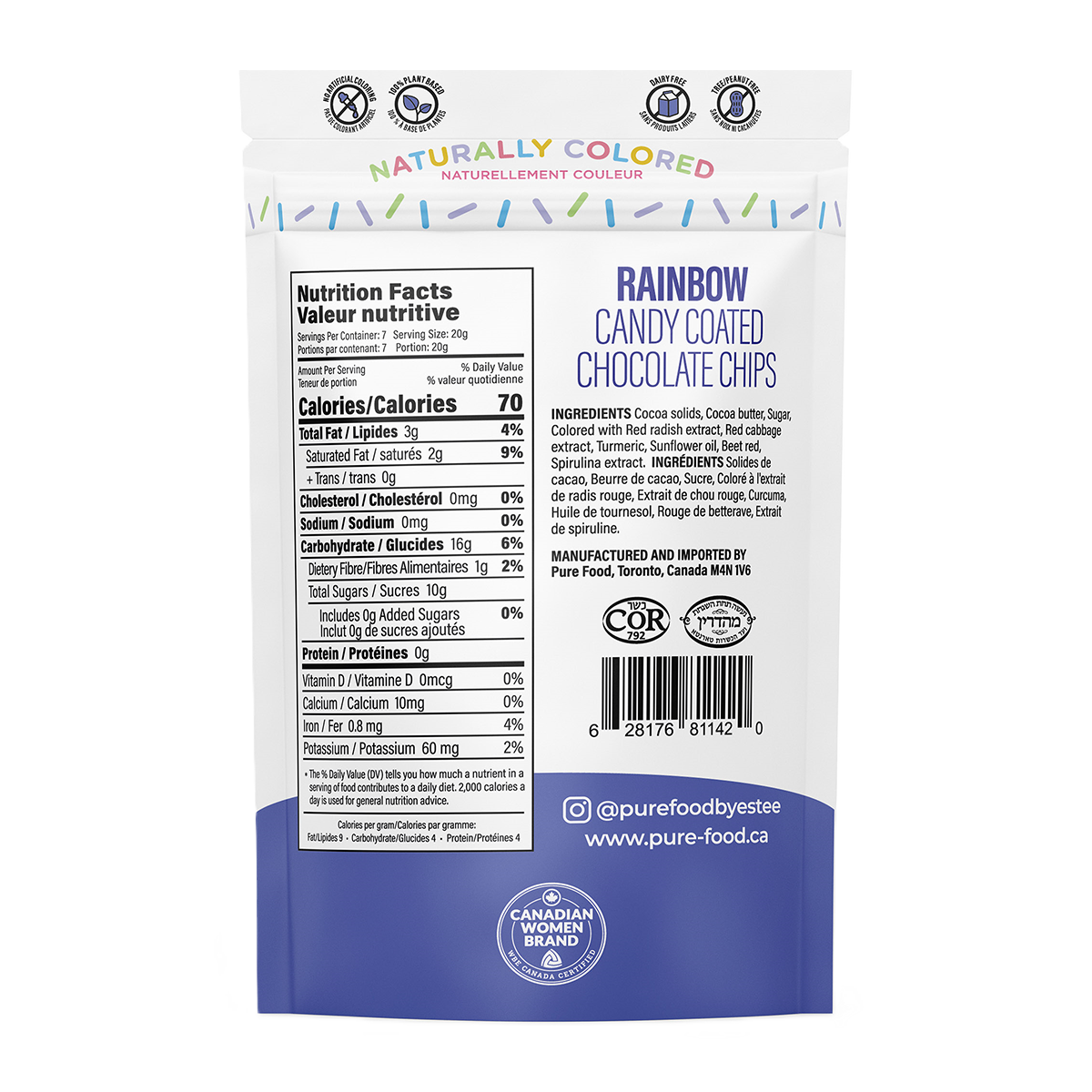 Pure Food Chocolate Chips Rainbow Candy Coated 142g
