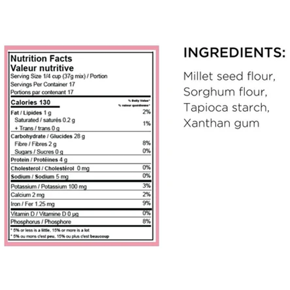 Millet seed flour, Sorghum flour, Tapioca starch, Xanthan gum.