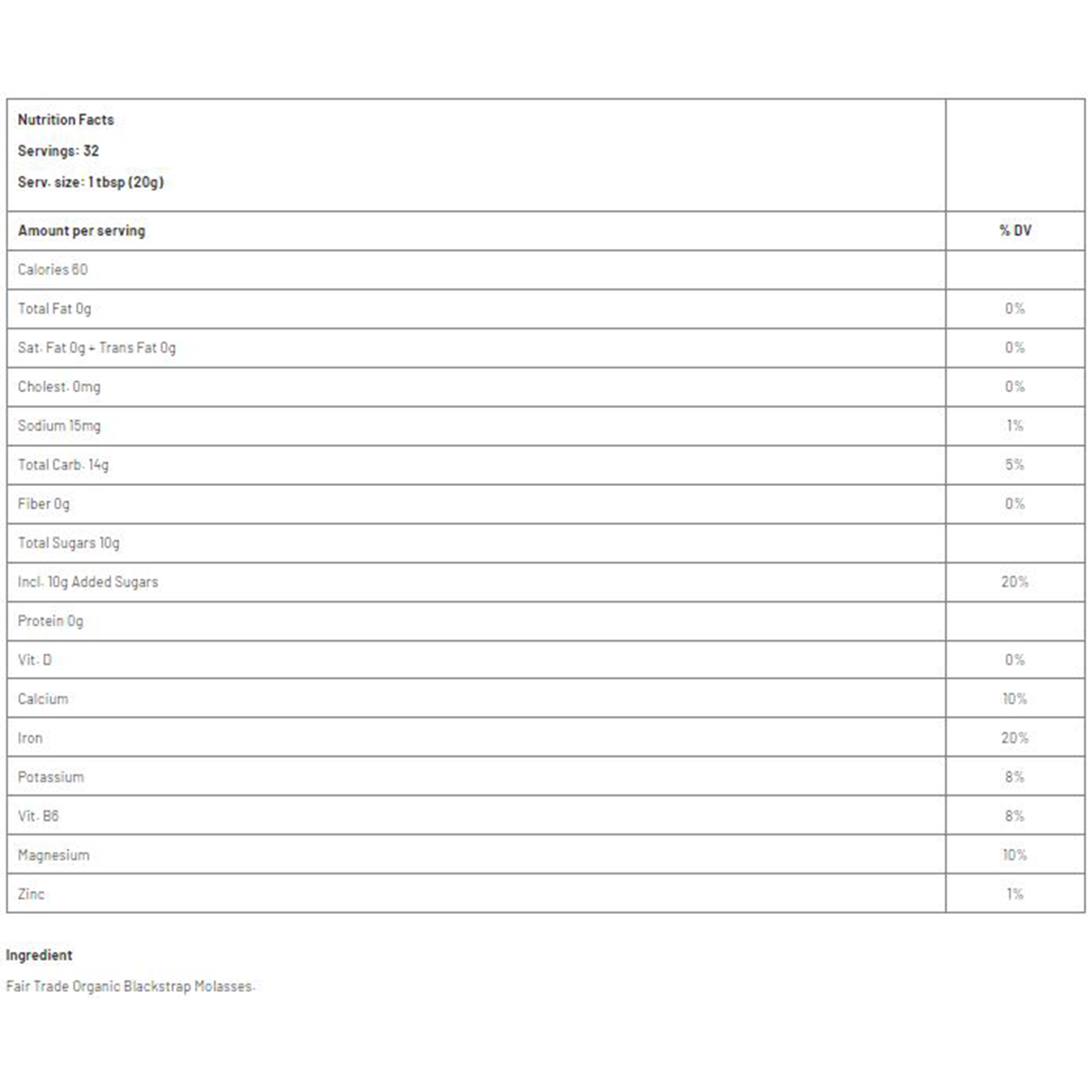 This Organic Fair Trade Blackstrap Molasses offers a rich, full-bodied and robust flavor that perfectly complements gingerbread, cookies, bran muffins, chili, BBQ sauce and more.