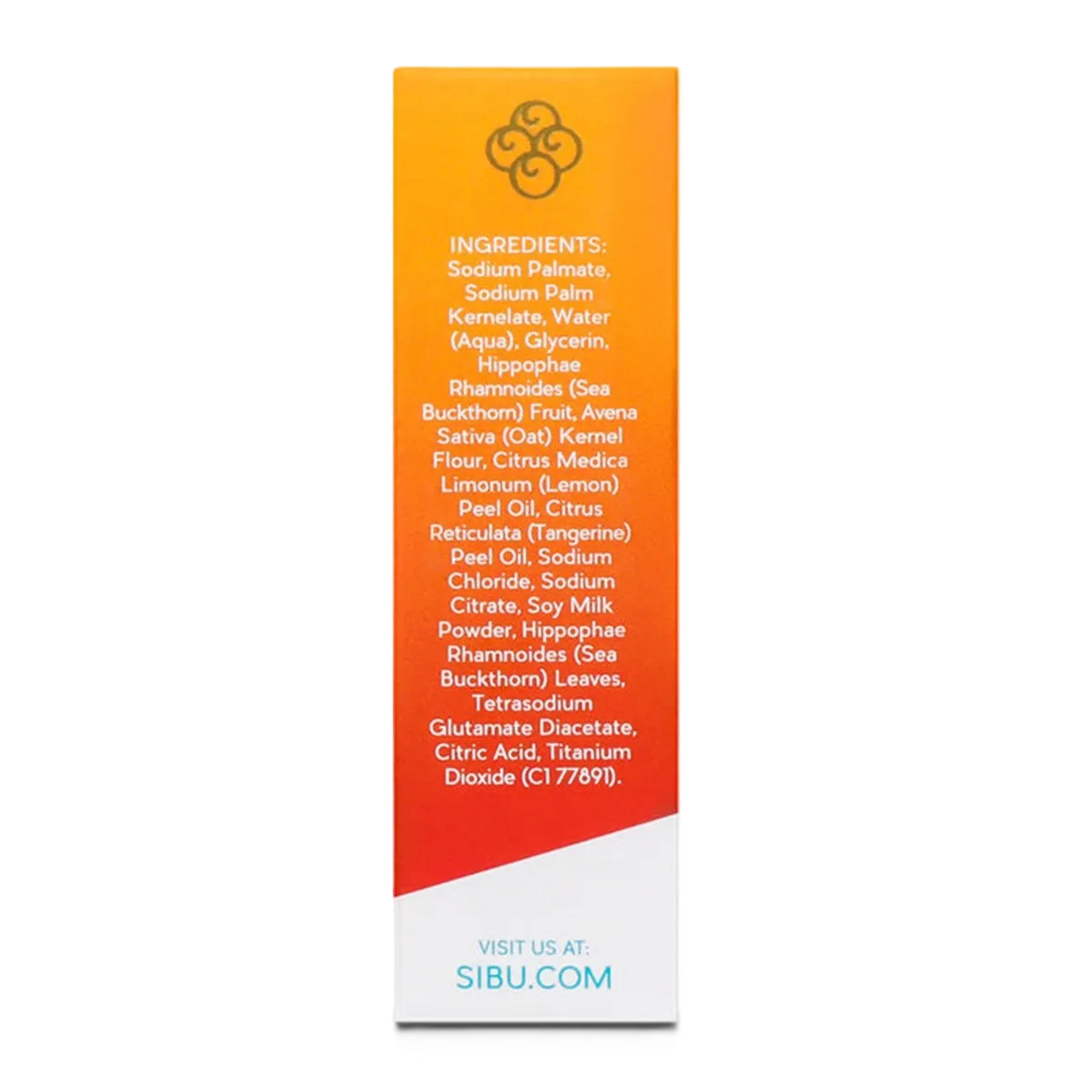 Sodium Palmate, Sodium Palm Kernelate, Water (Aqua), Glycerin, Hippophae Rhamnoides (Sea Buckthorn) Fruit, Avena Sativa (Oat) Kernel Flour, Citrus Medica Limonum (Lemon)Peel Oil, Citrus Reticulata (Tangerine) Peel Oil, Less than 1% of: Sodium Chloride, Sodium Citrate, Soymilk Powder, Hippophae Rhamnoides (Sea Buckthorn) Leaves, Tetrasodium Glutamate Diacetate, Citric Acid, Titanium Dioxide (CI 77891).