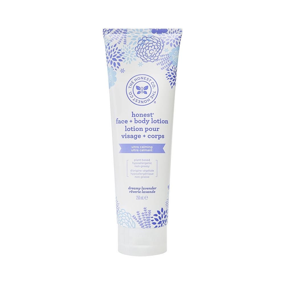 The Honest Company Face & Body Lotion with lavender essential oil, Assists to calm and relax. The chamomile, calendula and aloe Assist calm and soothe, while the organic olive, shea, and jojoba oils nourish and moisturize. No harsh chemicals or synthetic fragrances.