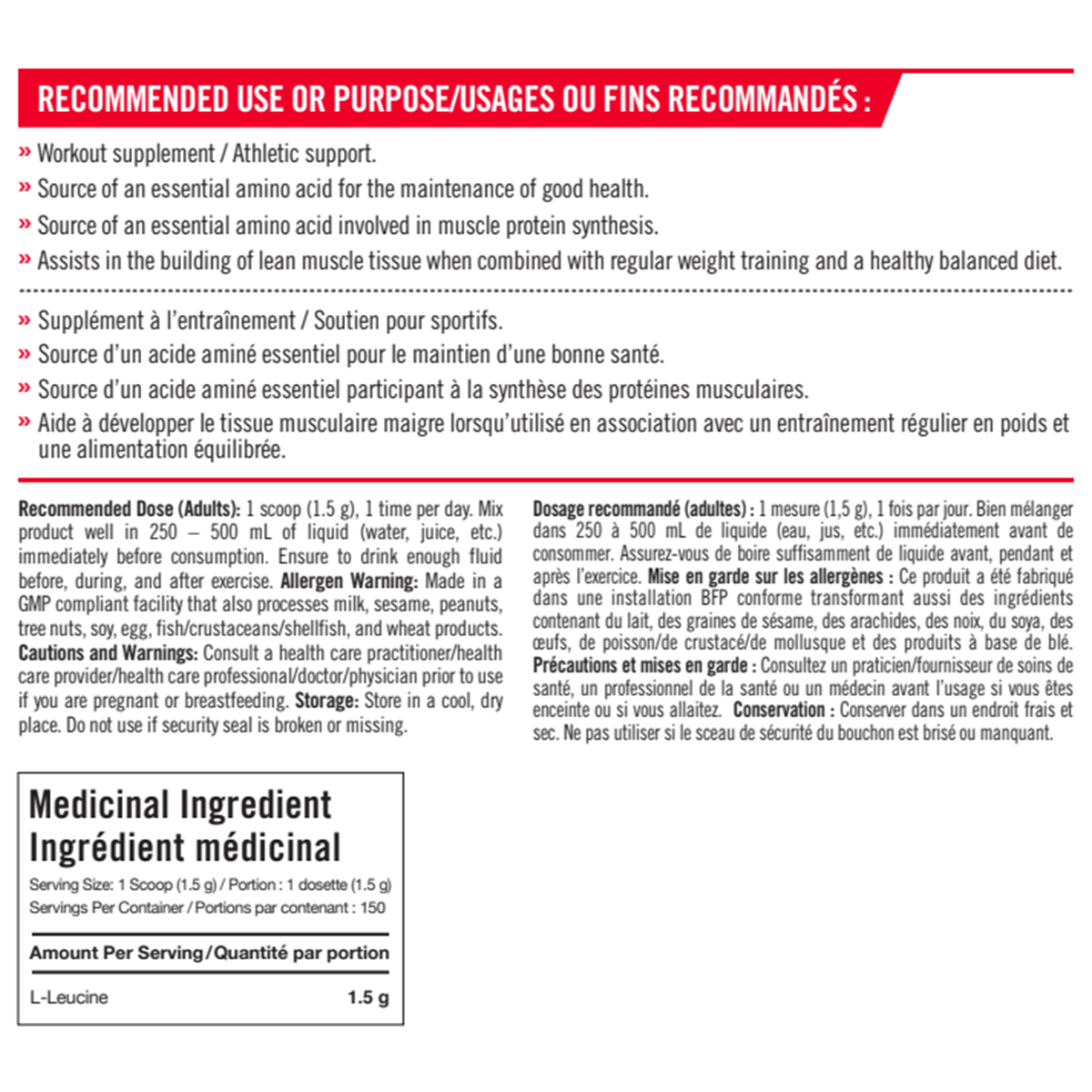 Each scoop of BioSteel’s Fermented Leucine powder is packed with 1500 mg of pure leucine per serving, and nothing else. This powerful amino acid helps build lean muscle and maintain overall good health. Easily stack this unflavoured powder in your shakes or your favourite BioSteel products to build your own custom creations, without compromising taste.
