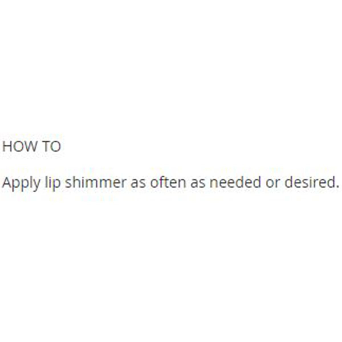 Apply lip shimmer as often as needed or desired.
