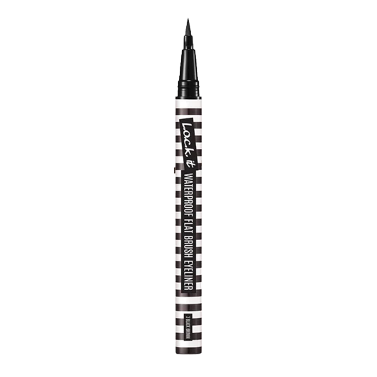 This eyeliner features a soft flat brush that allows creating precise and sharp lines in one sweep. Its waterproof formula dries quickly and offers densely-pigmented dark brown lines.