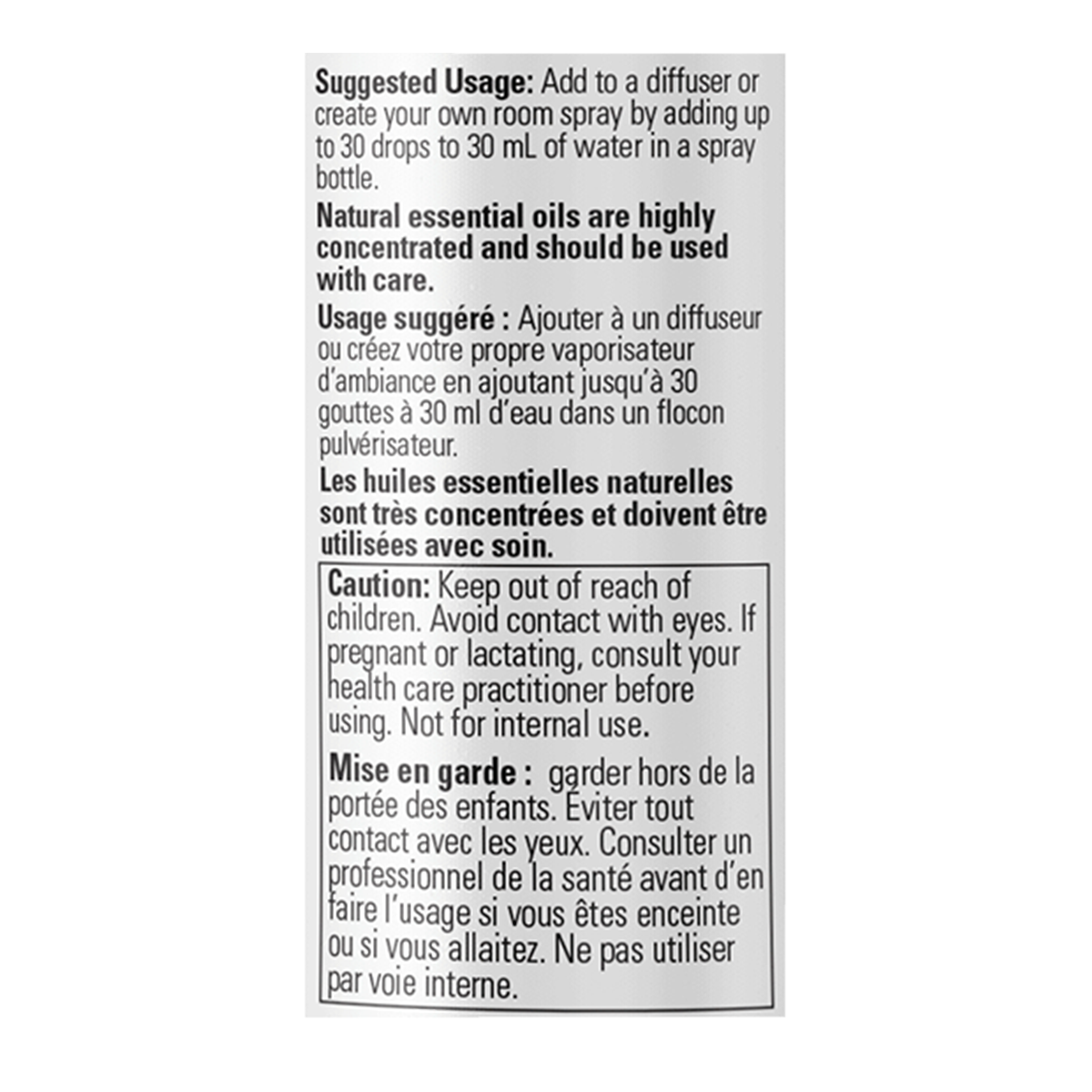 Caution: Keep out of reach of children. Avoid contact with eyes. If pregnant or lactating, consult your health-care practitioner before using. Not for internal use. Natural essential oils are highly concentrated and should be used with Wellness-Care.