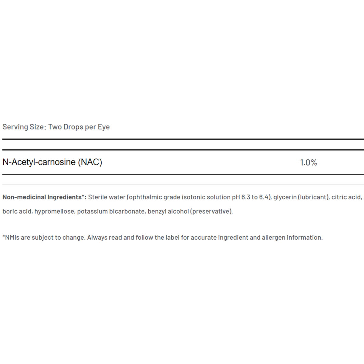 • A proprietary eye drop containing N-acetyl-carnosine, imported from Singapore