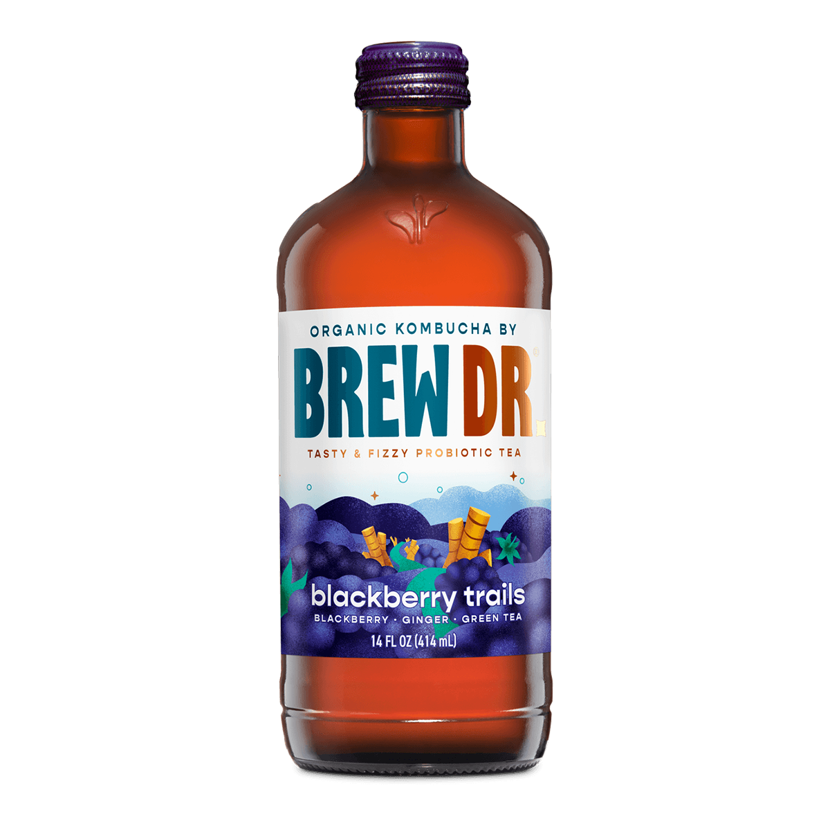 Brewed tea (water, green tea*), cane sugar*, blueberry juice*, blackberry puree*, ginger juice*, kombucha culture (yeast, bacteria), strawberry essence*. *Organic