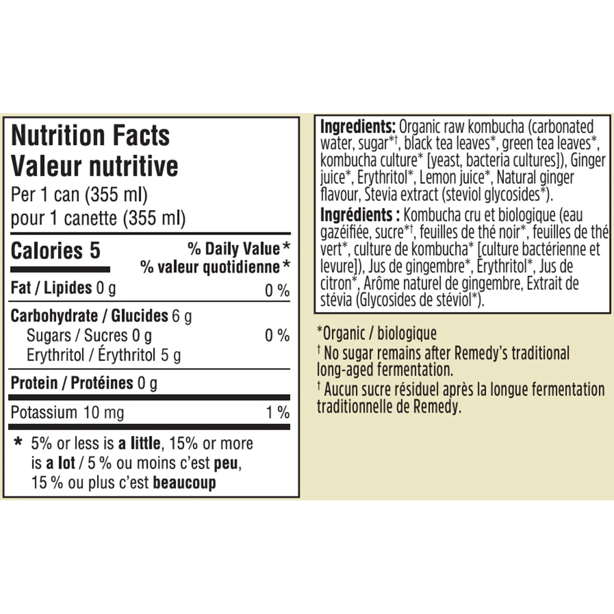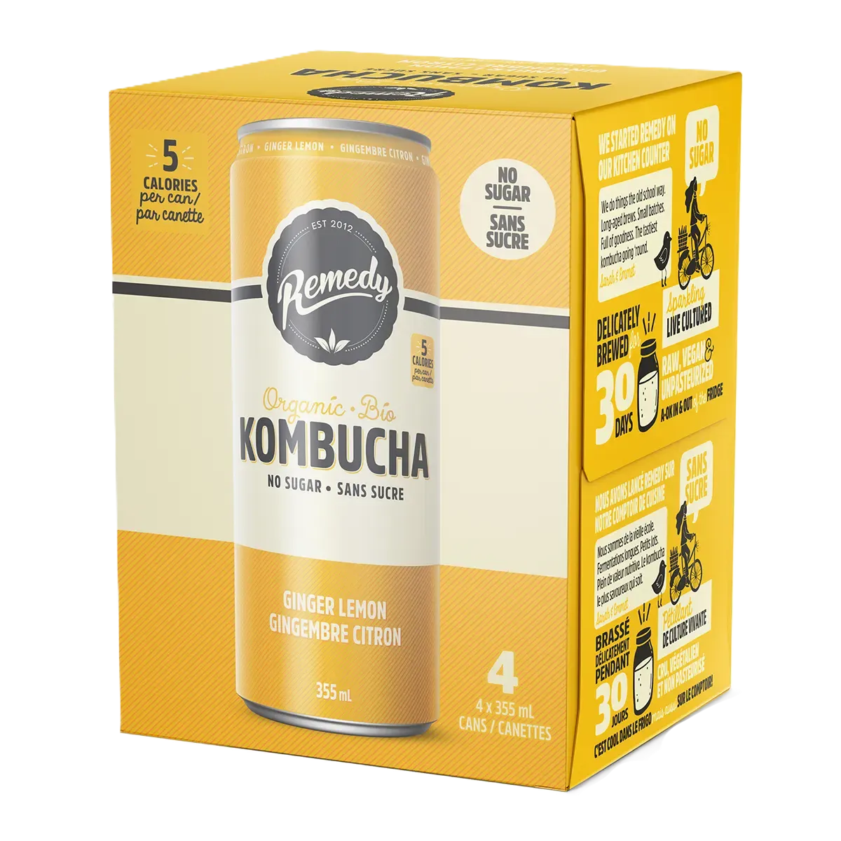 Remedy Organic Kombucha Can Ginger Lemon 4x355mL