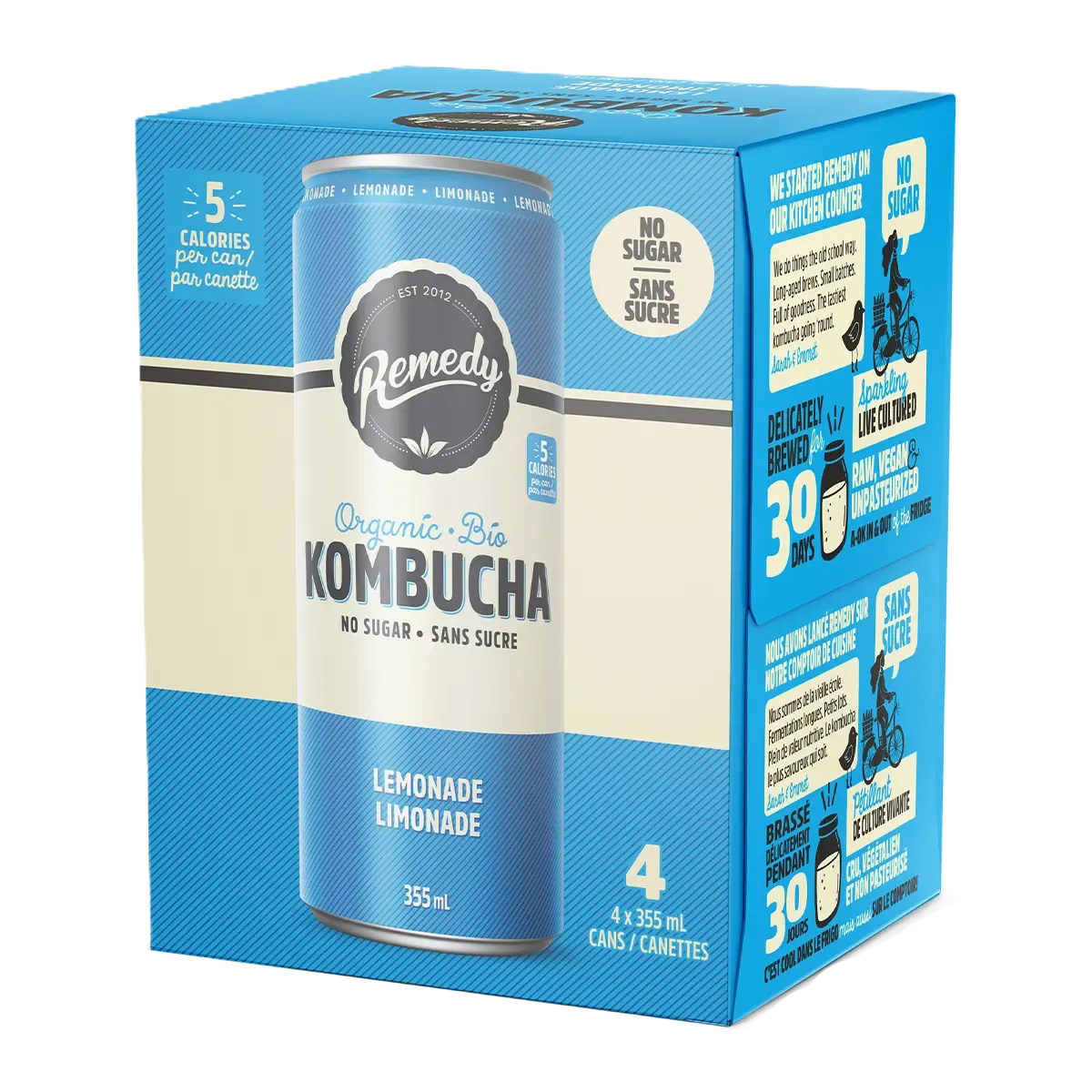 Remedy Organic Kombucha Can Lemonade 4x355mL