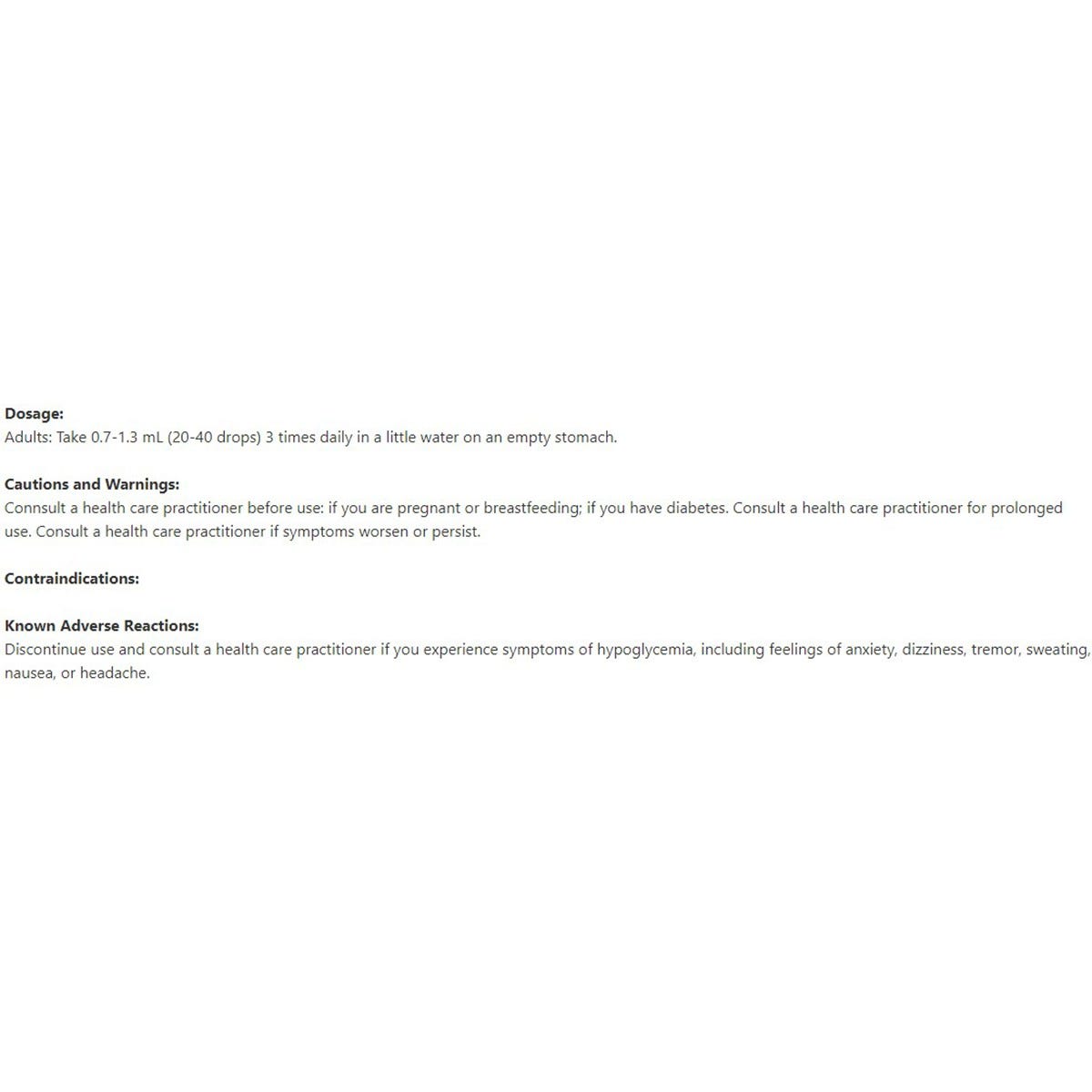 Adults: Take 0.7-1.3 mL (20-40 drops) 3 times daily in a little water on an empty stomach.