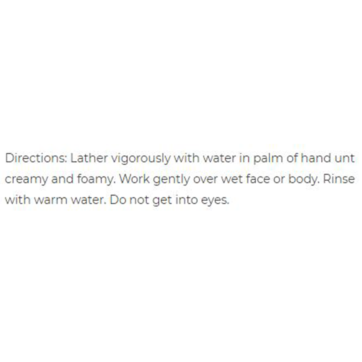 Lather vigorously with water in palm of hand until creamy and foamy. Work gently over wet face or body. Rinse with warm water. Do not get into eyes.