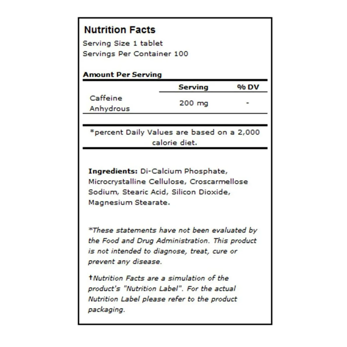 Serving Size 1 tablet Servings Per Container 100