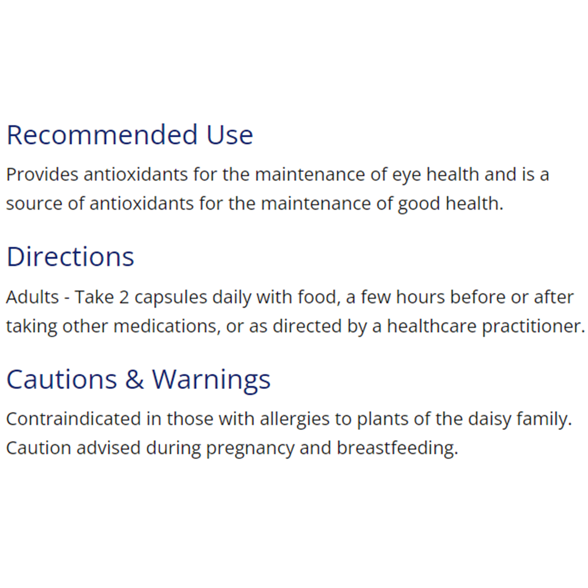 Provides antioxidants for the maintenance of eye health and is a source of antioxidants for the maintenance of good health.