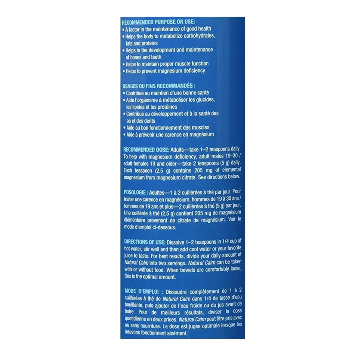 Dissolve 1-2 teaspoons in 1/4 cup of hot water, stir well and then add cool water or your favorite juice to taste. For best results, divide your daily amount of Natural Calm into two servings. Natural Calm can be taken with or without food. When bowels are comfortably loose, this is the optimal amount.