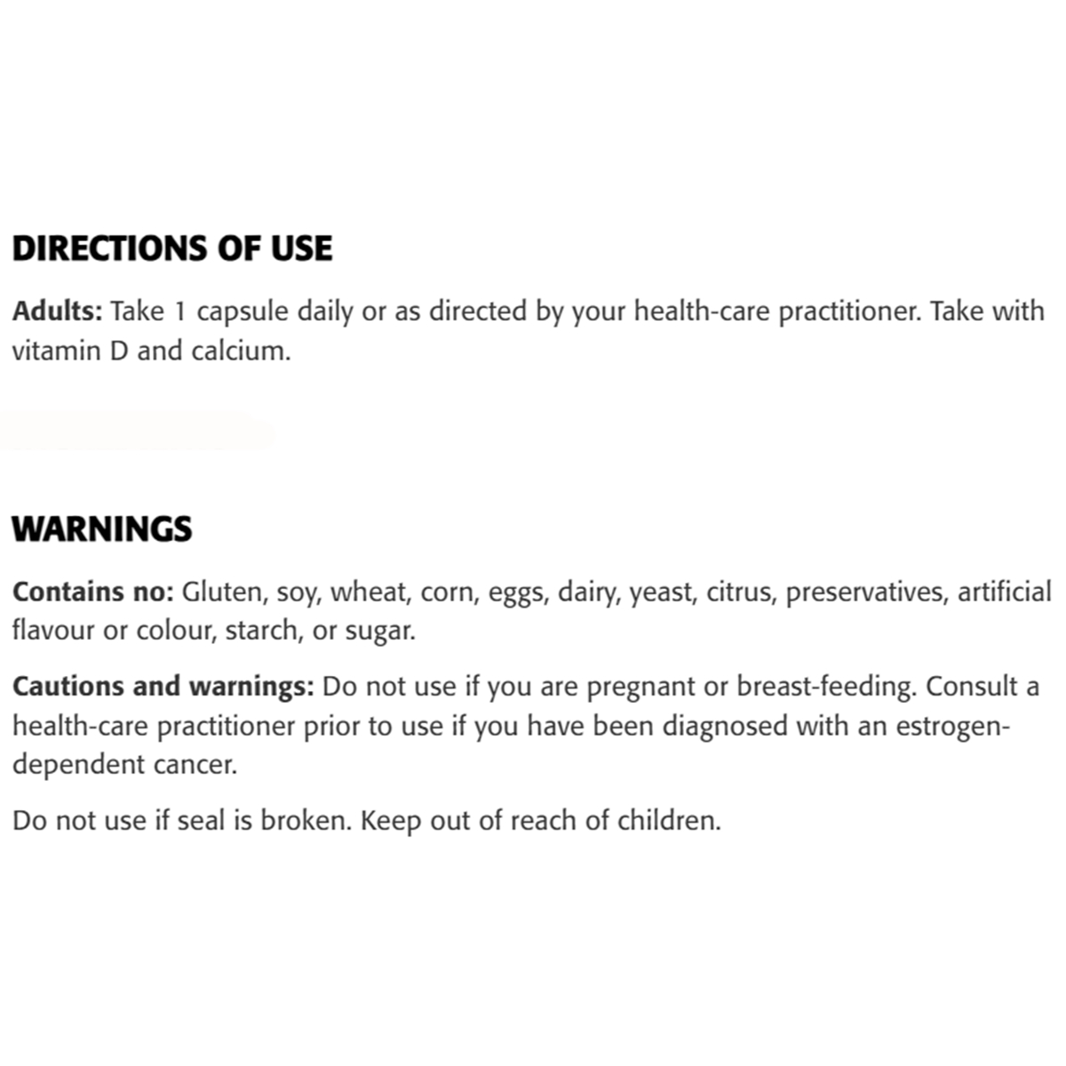 Cautions and warnings: Do not use if you are pregnant or breast-feeding. Consult a health-wellness-care practitioner prior to use if you have been diagnosed with an estrogen-dependent cancer.
