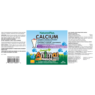 Nature's Plus Animal Parade Childrens Calcium Sugar Free Vanilla Sundae 90 Chewable Tablets