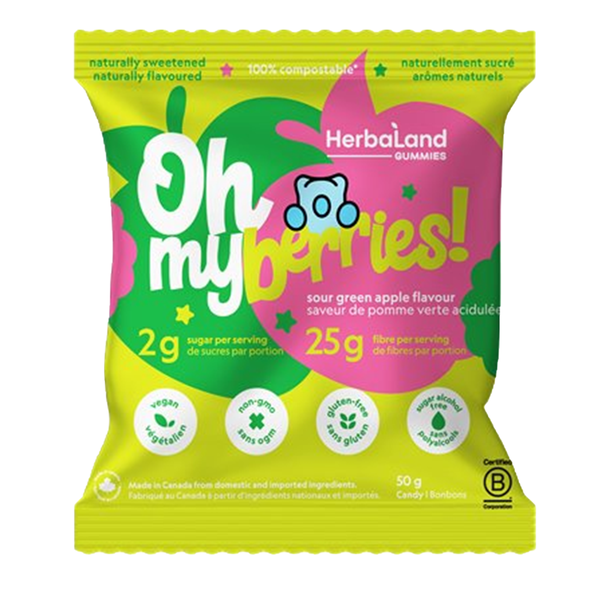 Oh my! These gummies are the best candy around, with only 2g of sugar and 25g of fiber per pouch. Made from plant-based ingredients and all-natural flavours, these gummies are the perfect healthy snack!.