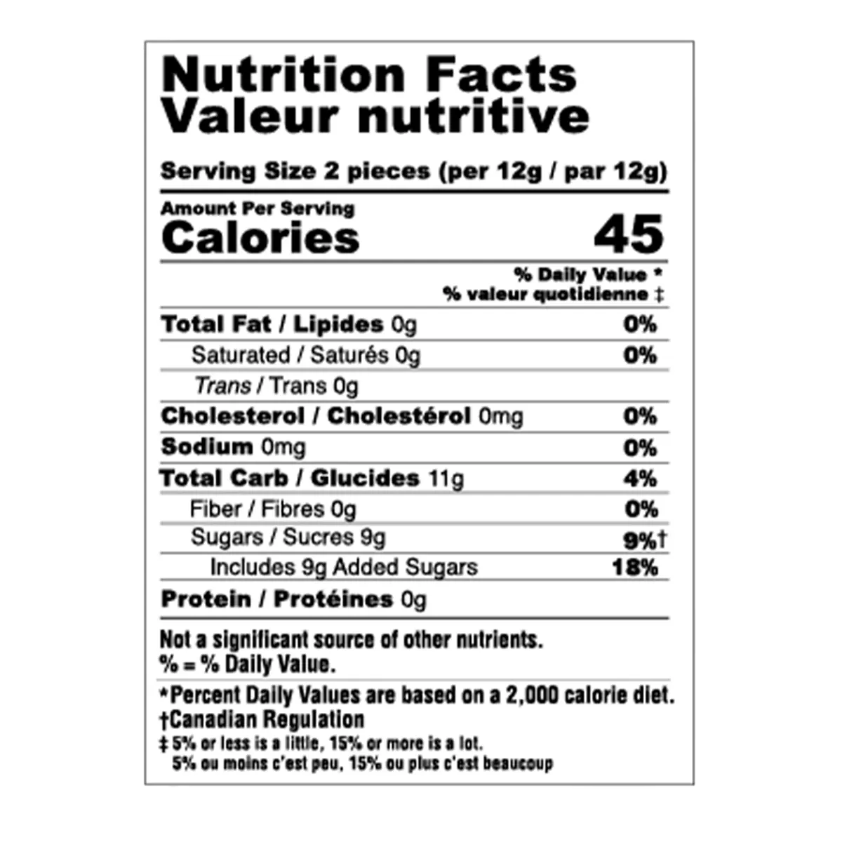 Serving Size 2 pieces (per 12g / par 12g)