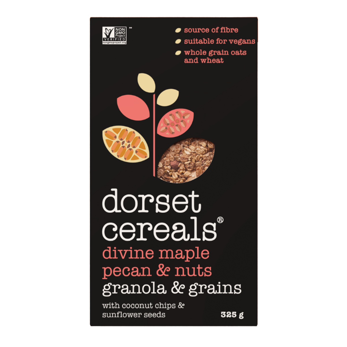 A crunchy blend of cereal flakes and seeds with maple caramelized pecans and whole almonds.