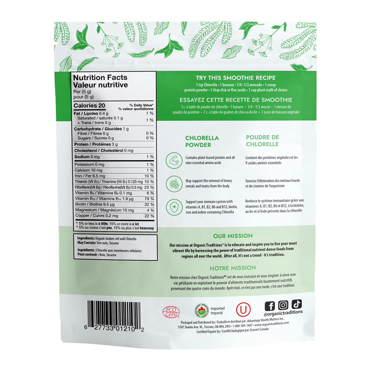If you're looking for a high-quality chlorella powder, look no further. This one is organic, plant-based, and made in Canada—a winning combination!