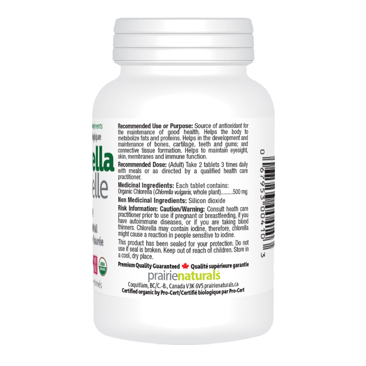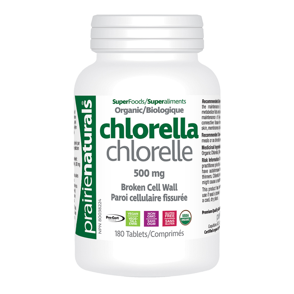 Prairie Naturals Organic Chlorella 500mg 180 Tablets