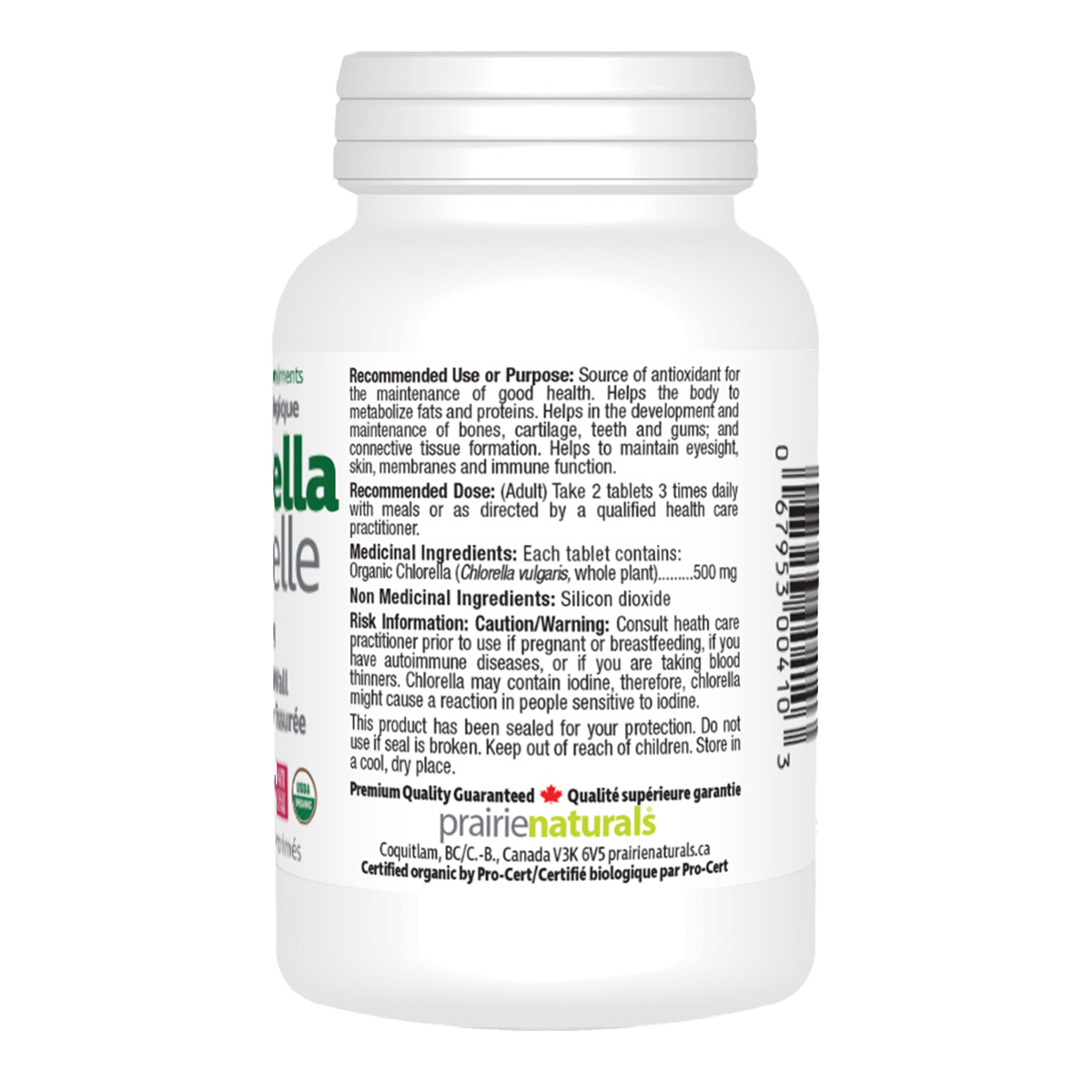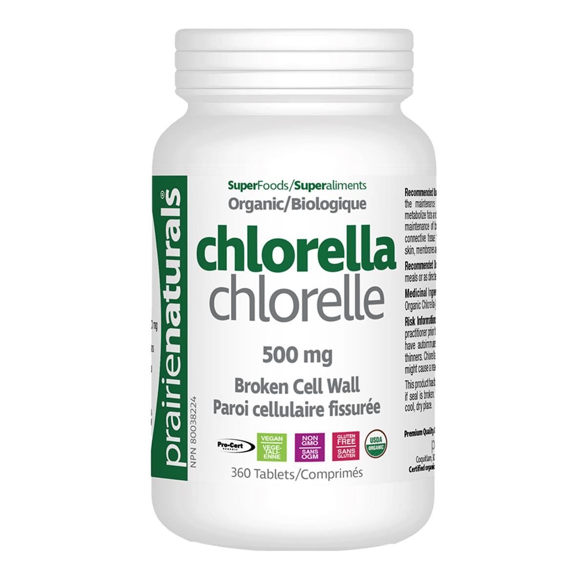 Prairie Naturals Organic Chlorella 500mg 360 Tablets