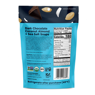 ChocXO Keto Snaps Dark Chocolate Coconut Almond + Sea Salt 98g