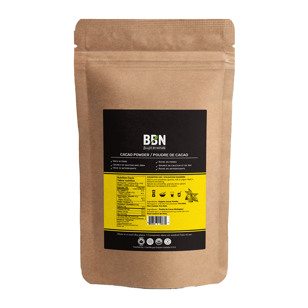 A true superfood, cacao powder is a good source of Magnesium, Iron and Zinc and a very high source of Fiber. Cacao also contains essential minerals and a host of antioxidants.