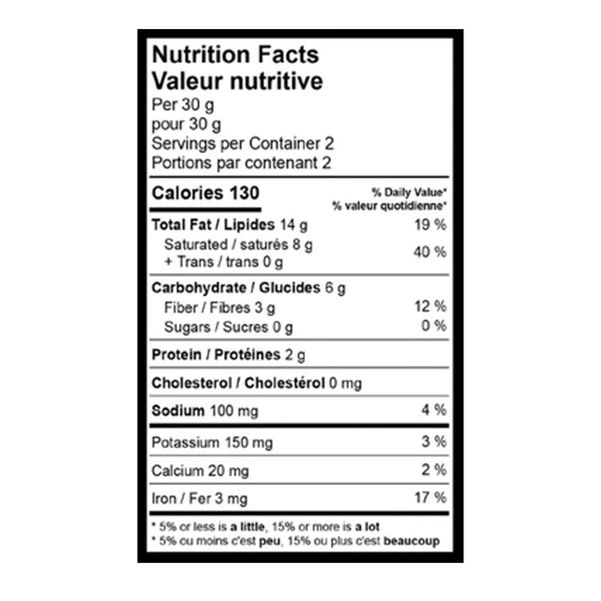 Saturated/saturés 8 g + Trans/trans 0 g