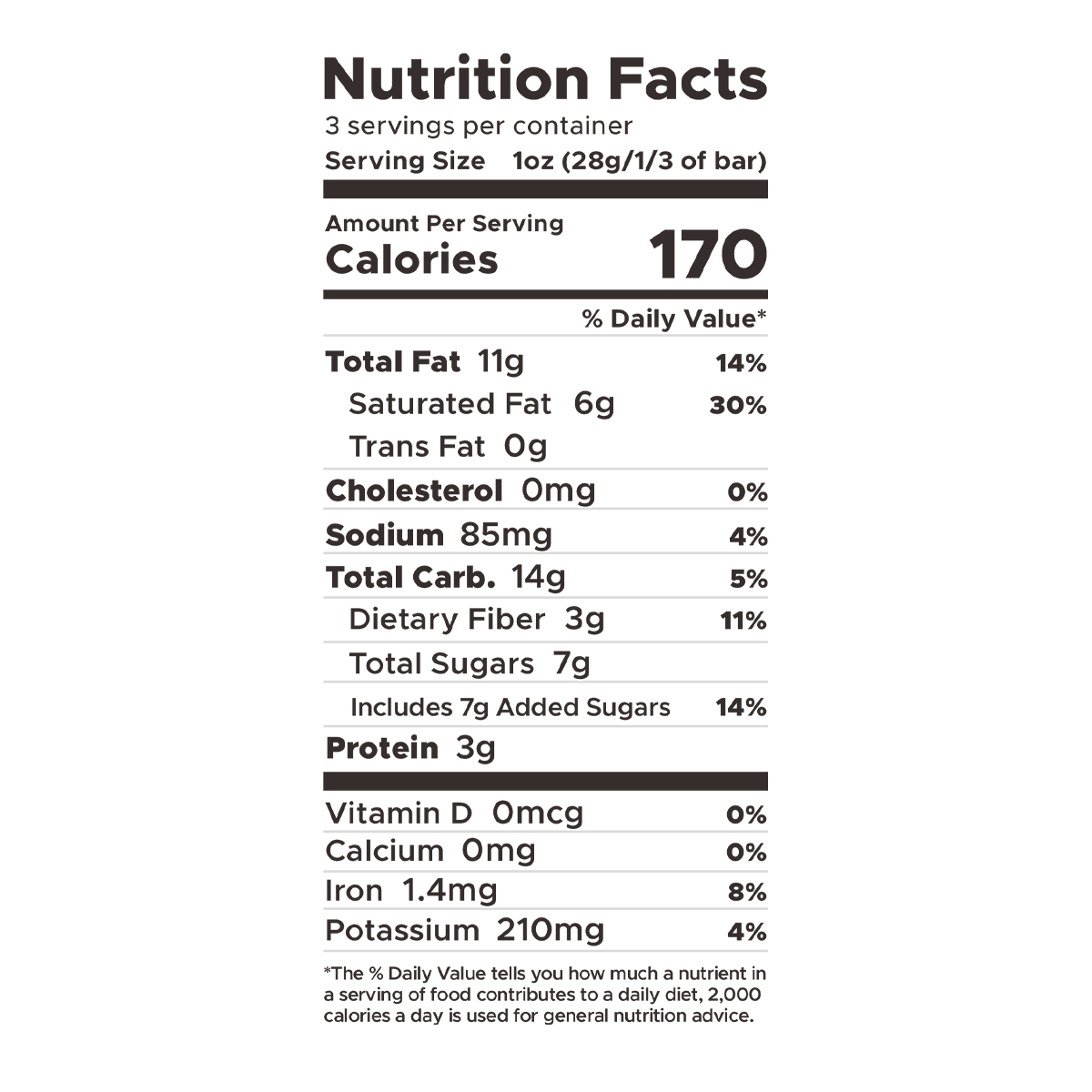 Serving SIze 1ox (28g Or 1/3 Of Bars)