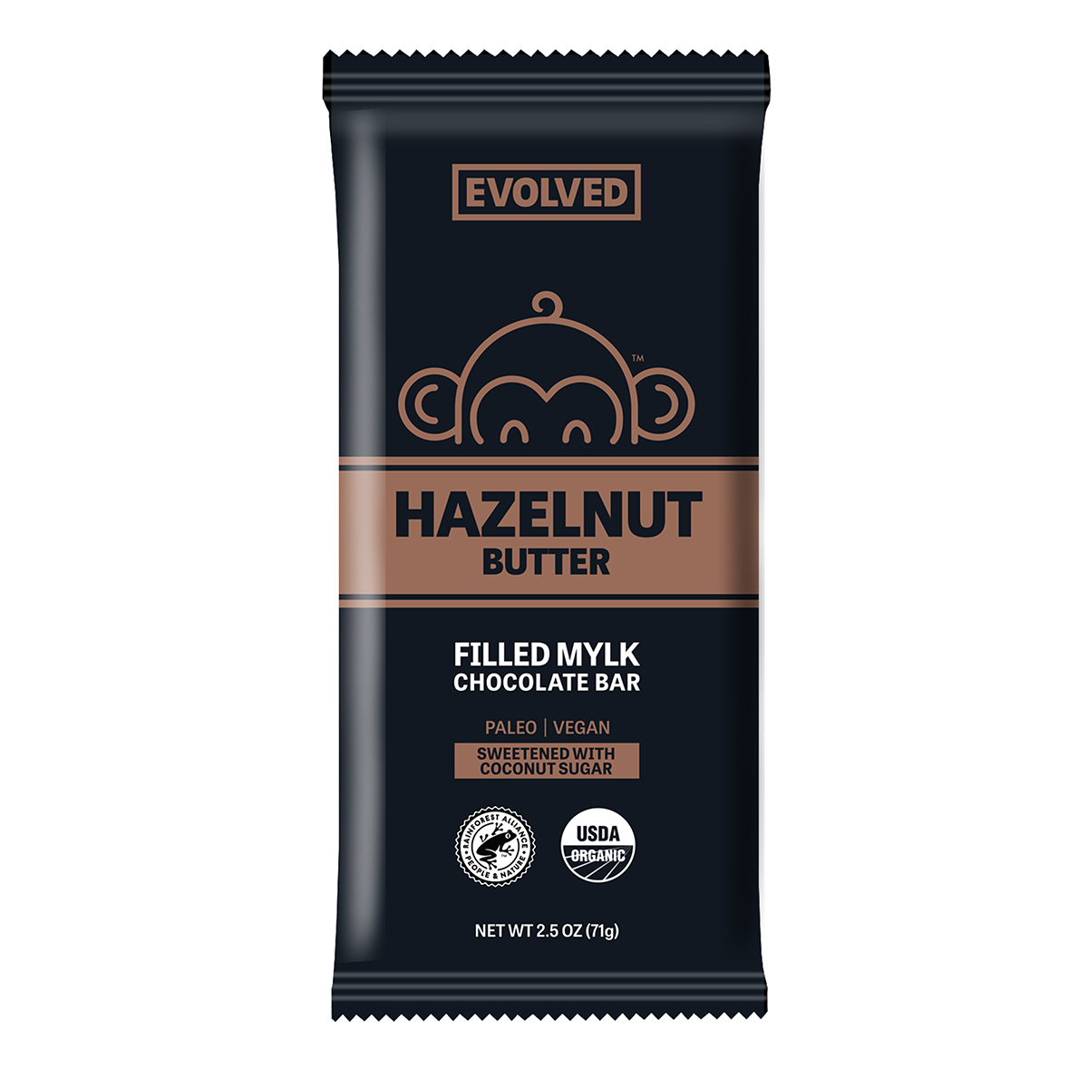 Mylk chocolate filled with a thick layer of this homemade hazelnut butter. It’s like your favorite chocolate hazelnut spread evolved into a dairy free chocolate bar. Chocolate crafted from high quality, organic ingredients such as hazelnuts, coconut sugar, cacao, cashews, and pink sea salt.
